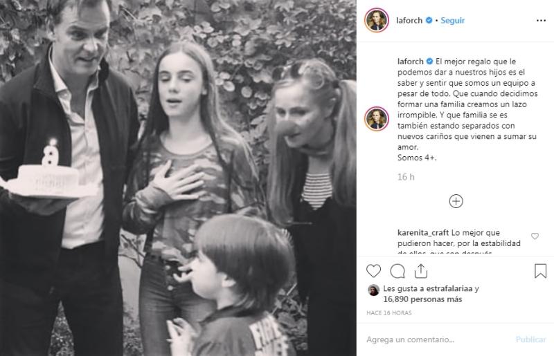 “El mejor regalo que le podemos dar a nuestros hijos es el saber y sentir que somos un equipo a pesar de todo. Que cuando decidimos formar una familia creamos un lazo irrompible. Y que familia se es también estando separados con nuevos cariños que vienen a sumar su amor”, dice su mensaje.