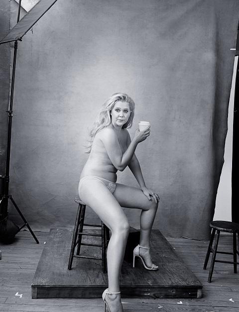Amy Schumer es una de las que fue elegida. Annie Leibovitz dijo que la eligió por ser uno de los mejores talentos en la comedia y contó que cuando se lo propuso “le conté mi idea y le pregunté si se sentía cómoda con esto y ella respondió “por supuesto. Amo mi cuerpo”.