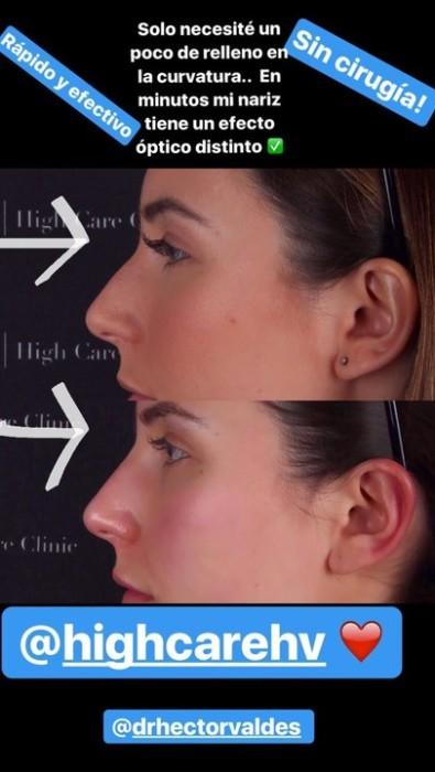 Fue en redes sociales que la chica reality mostró el resultado con una comparación de su antes y ahora. “Solo necesité un poco de relleno en la curvatura (de la nariz). En minutos, mi nariz tiene un efecto óptico distinto”, reveló contenta.