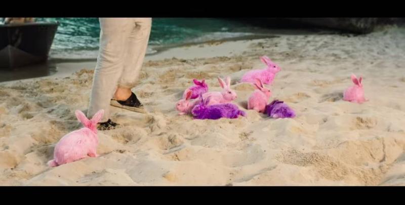 Polémica por conejos rosados y morados en el videoclip del cantante.