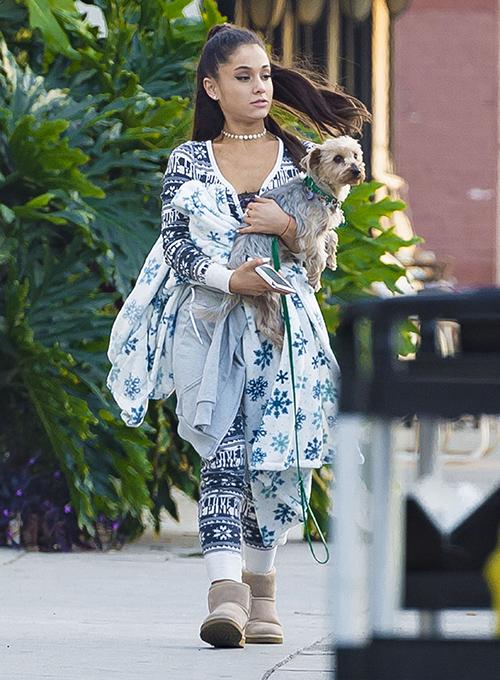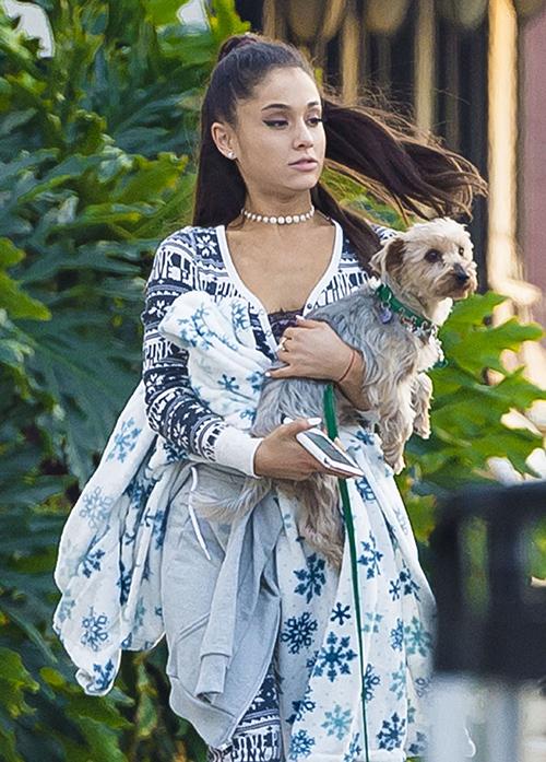 ¿Qué le pasó a Ariana Grande en su rostro? Paparazzis la fotografiaron con su perro en un paseo cualquiera, vistiendo casual, pero muy bien peinada y maquillada.
