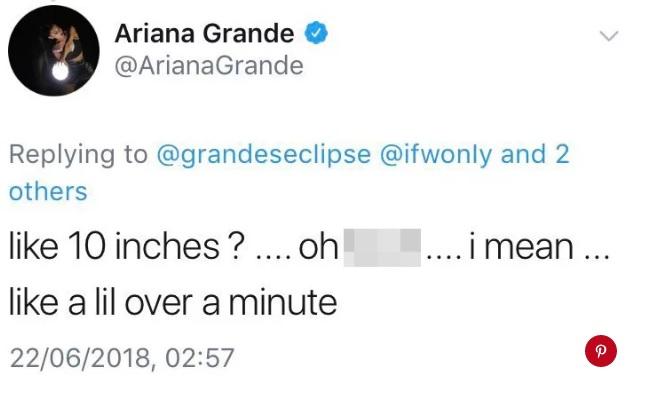 "¿Como 10 pulgadas (25 cm)? ... oh mierda... quiero decir... como un poco más de un minuto", respondió la cantante.