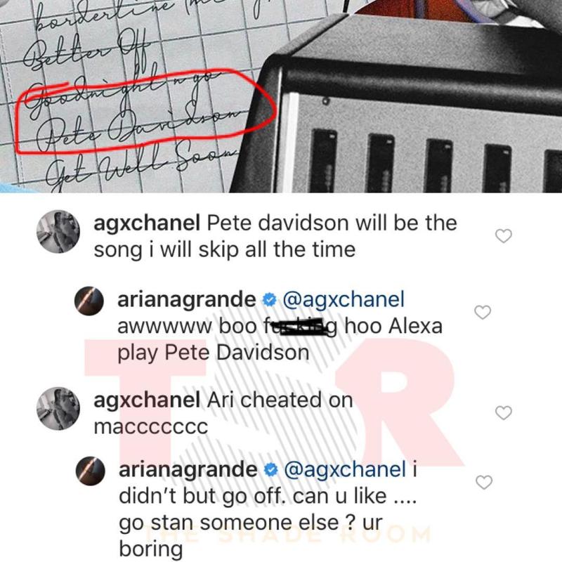 Todo comenzó cuando el usuario comentó acerca de la canción titulada con el nombre de su nueva pareja, Pete Davidson. “Pete davidson será la canción que saltaré todo el tiempo”, redactó.
