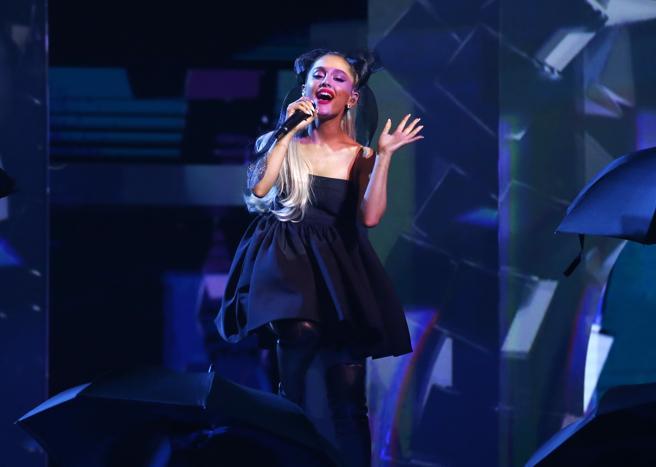 Nadie se percató que el choker con el que Ariana ingresó al escenario saltó volando en medio de su presentación con destino azaroso.