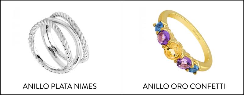 Una de ellas es Nimes, con tendencias de líneas simples y orgánicas, inspirada en tejidos deshilachados de las prendas distressed denim, como los blue jeans con hoyos y tajos. Esta tendencia es para personas que prefieren líneas minimalistas, donde la joya pasa a ser un complemento y no protagonista, pero obviamente, ayuda a conseguir un estilo mucho más interesante, especialmente cuando el outfit es colorido, por ejemplo. En esta colección se destacan la nobleza de los metales, las líneas delgadas y curvas, ausencia de piedras y colores, con opciones con baño de oro de 18 quilates y baño de rodio, logrando un acabado color plata mucho más duradero y brillante.
