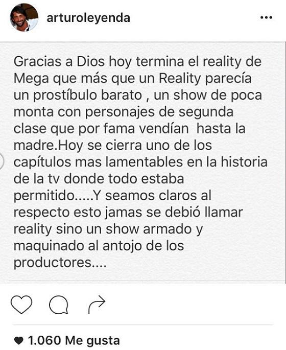 Arturo Longton publicó violento mensaje contra reality de Mega