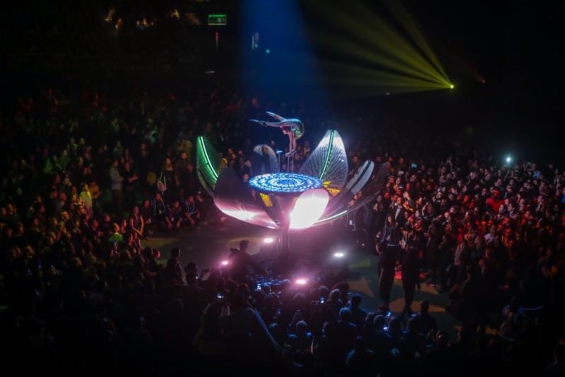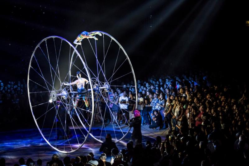 Para los que están sentados muy arriba esto puede ser un problema, pero en la cancha la lejanía se compensa con escenarios flexibles y shows en el suelo, que permiten ver algunas de las acrobacias a centímetros de distancia, y formar así parte de este espectáculo que une a los intérpretes con el público por primera vez desde tan cerca.