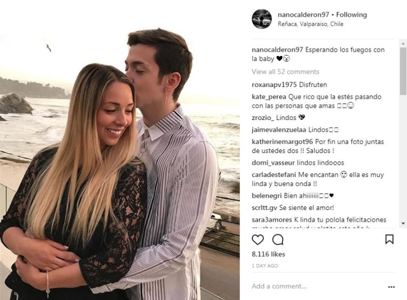 El menor del clan Argandoña-Calderón decidió compartir con sus admiradores una romántica postal junto a su polola, con quien inició el 2018 en Reñaca. “Esperando los fuegos con la baby”, escribió en la publicación.