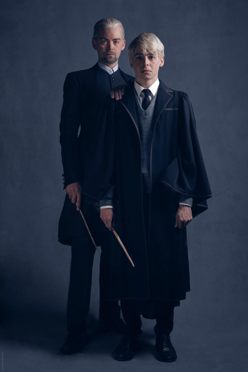 A diferencia de la familia Weasley-Granger, que sorprendió con una Hermione afroamericana, Draco adulto se parece mucho al personaje que conocimos en las películas. El personaje será interpretado por Alex Price, quien adquirió el mismo look con el pelo blanco que caracteriza a la familia Malfoy.