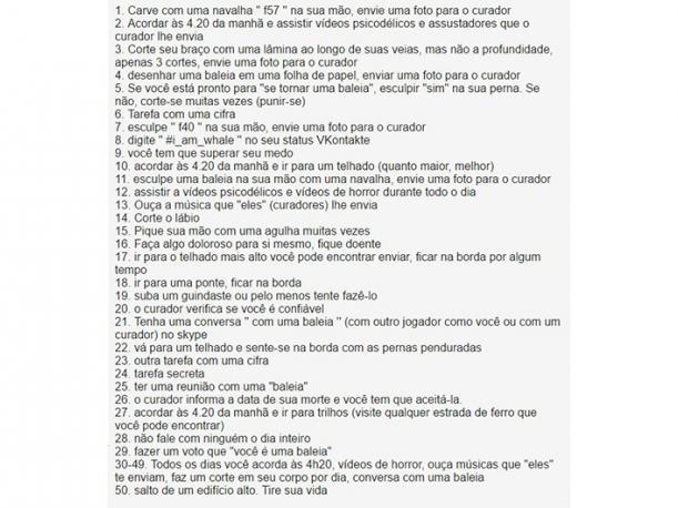 Consiste de 50 retos, el último es matarse.