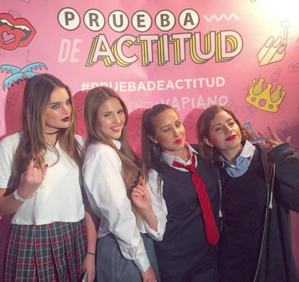 En la nueva película de Fabrizio Copano, “Prueba de Actitud”, las protagonistas son 4 colegialas que en el lanzamiento se lucieron vestidas de uniforme.