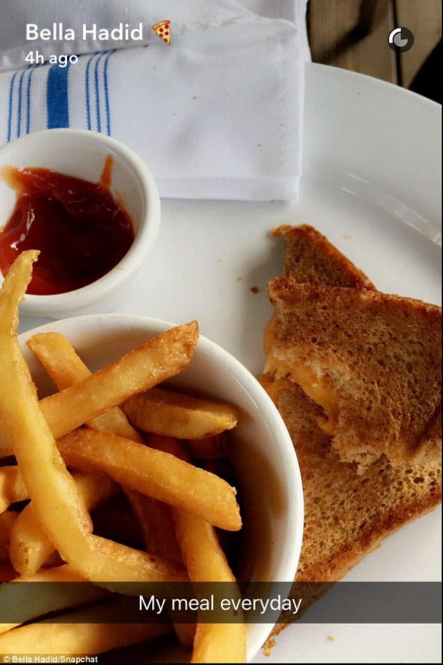 Una forma de demostrar que come de todo fue subiendo a Snapchat su plato de todos los días, papas fritas con un sándwich de queso cheddar caliente y crujiente.