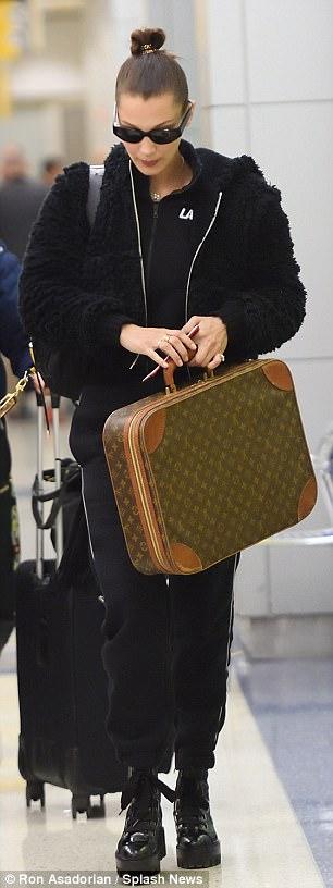 Bella Hadid fue captada en el aeropuerto JFK sin una sola capa de maquillaje. La súpermodelo tardó en encontrar sus anteojos de sol y fue fotografiada con su cara lavada, aunque con un muy buen look.