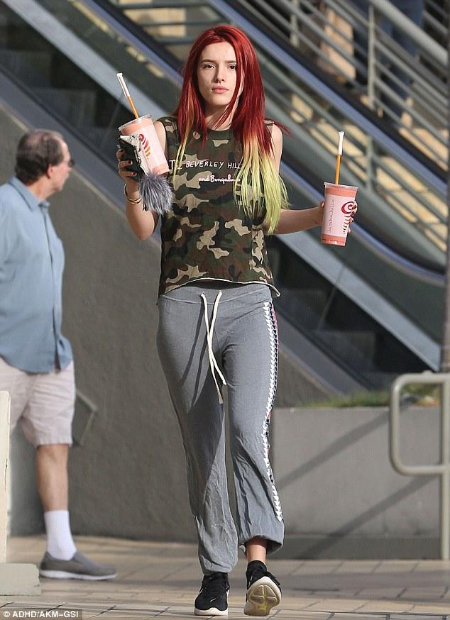 Bella Thorne se dejó ver a la salida del gimnasio en Hollywood junto a su hermana mayor, Dani. La bella actriz fue captada por paparazzis con new look ¡Pelirroja! Cambio que se realizó confiada en las manos de su estilista personal Brad Goreski.