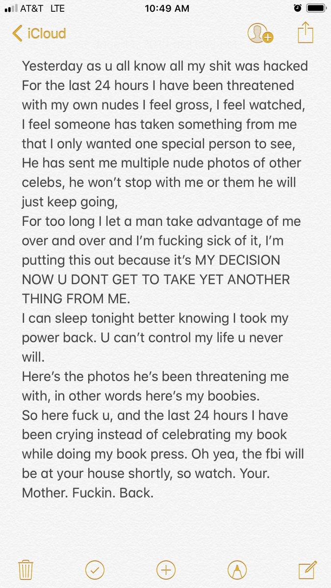 "Durante demasiado tiempo, dejé que un hombre se aprovechara de mí una y otra vez y estoy harta. Publico esto porque ahora es mi decisión (…) Dormiré mejor sabiendo que recuperé mi poder. No puedes controlar mi vida, nunca lo harás", manifestó la actriz en su cuenta de Twitter.