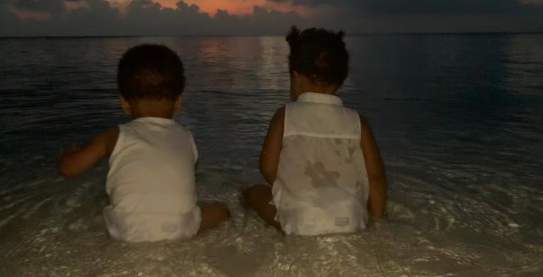 Y en la segunda se pueden ver a los dos pequeños disfrutando de un atardecer en el mar.