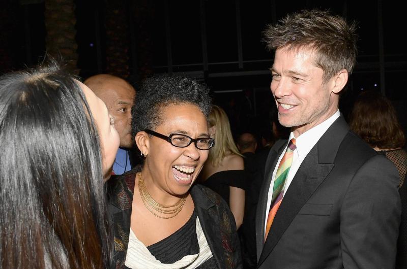 Así Brad Pitt se dejó ver, en el marco de una mediática fiesta en homenaje al director de cine George Lucas y al artista Mark Bradford.