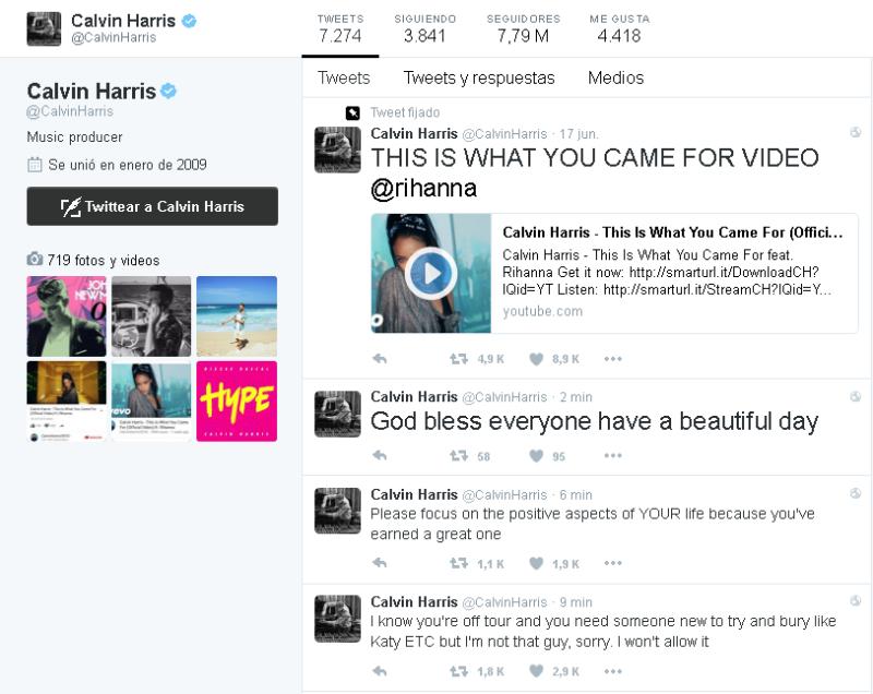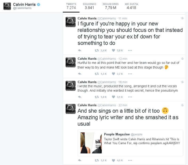 Quien tocó fondo es Calvin Harris, cansado de ser perseguido por los flashes, triste por su término con Taylor Swift, decepcionado de verla con otro y más encima hablando de su música se desquitó con ella en Twitter.