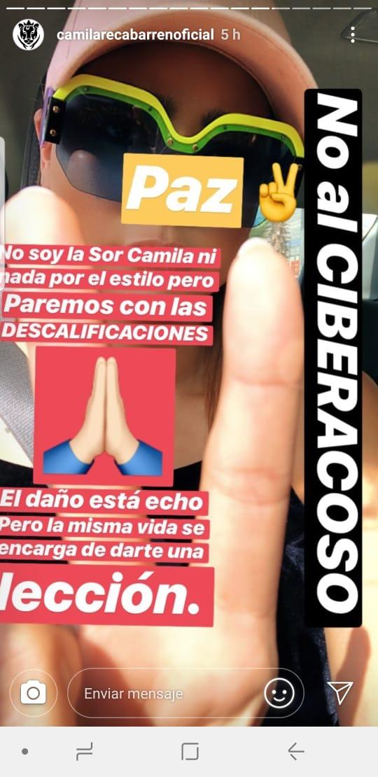 “Paz”, “No soy la Sor Camila ni nada por el estilo pero paremos con las descalificaciones”, “El daño está hecho pero la misma vida se encarga de darte una lección”,” No al ciber acoso”, fueron algunos de sus mensajes.
