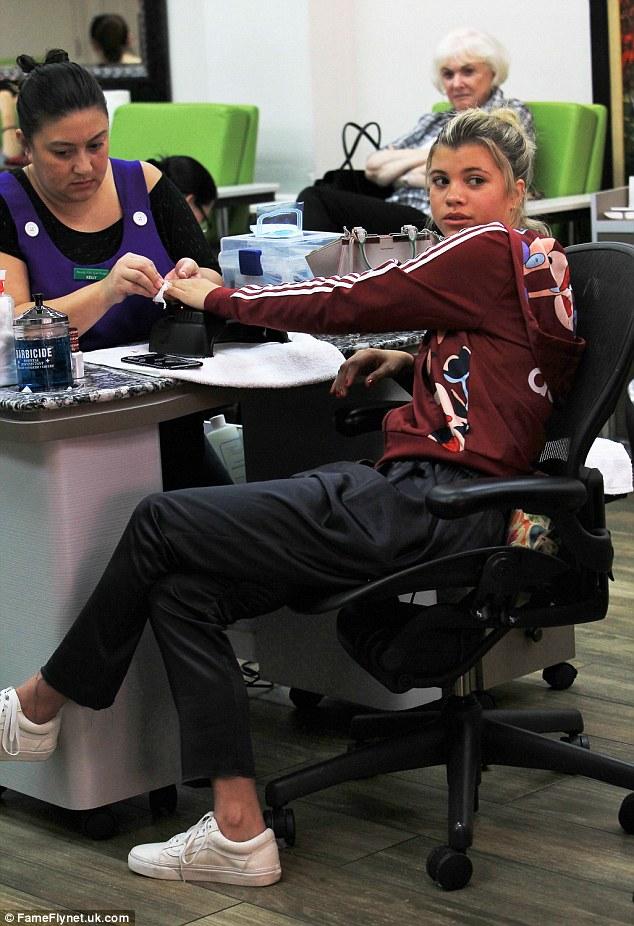Sofia Richie, la ex de Justin Bieber, fue vista en un centro de belleza de Beverly Hills haciéndose las uñas y con un look súper relajado de buzo y cara lavada.
