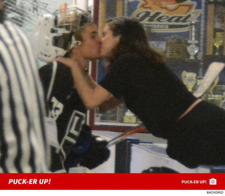 La imagen fue tomada el miércoles en la noche en el partido de hockey que cada semana juega el canadiense, y al que Selena fue la semana pasada, cuando fue captada usando la camiseta de su amor.
