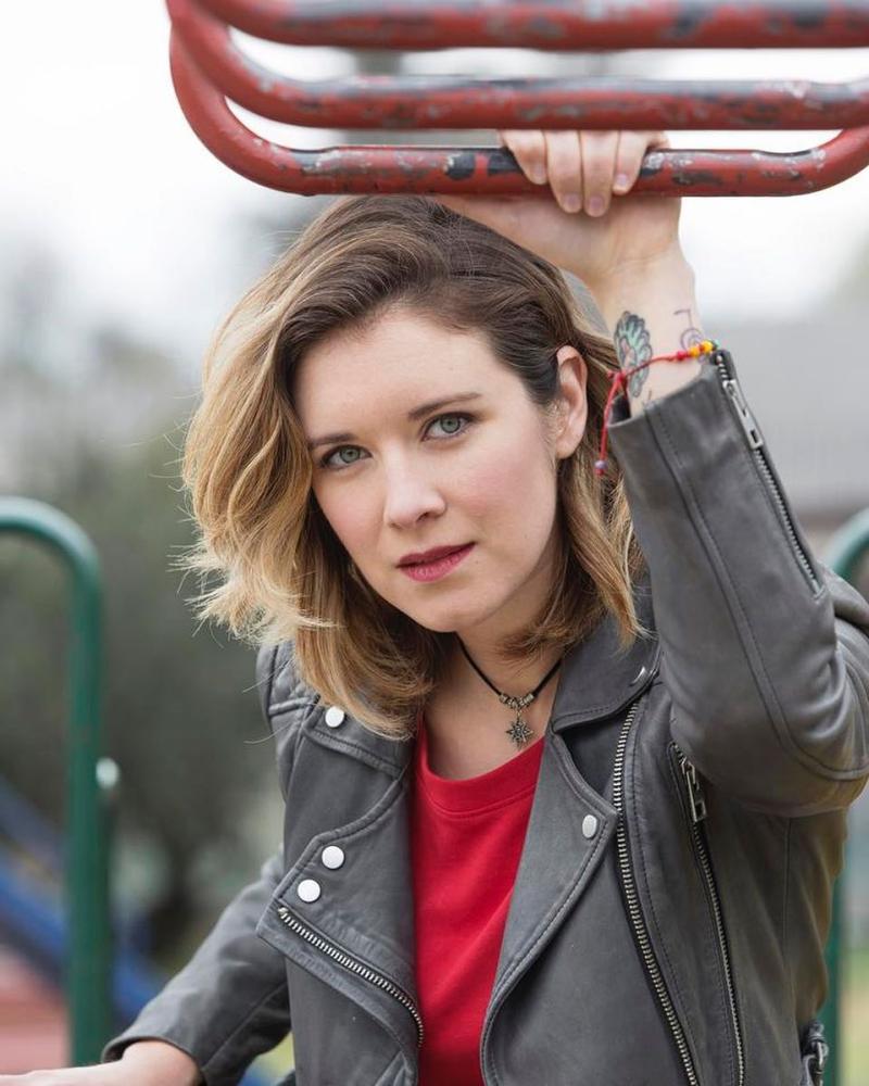 La animadora luce su cabello castaño oscuro.