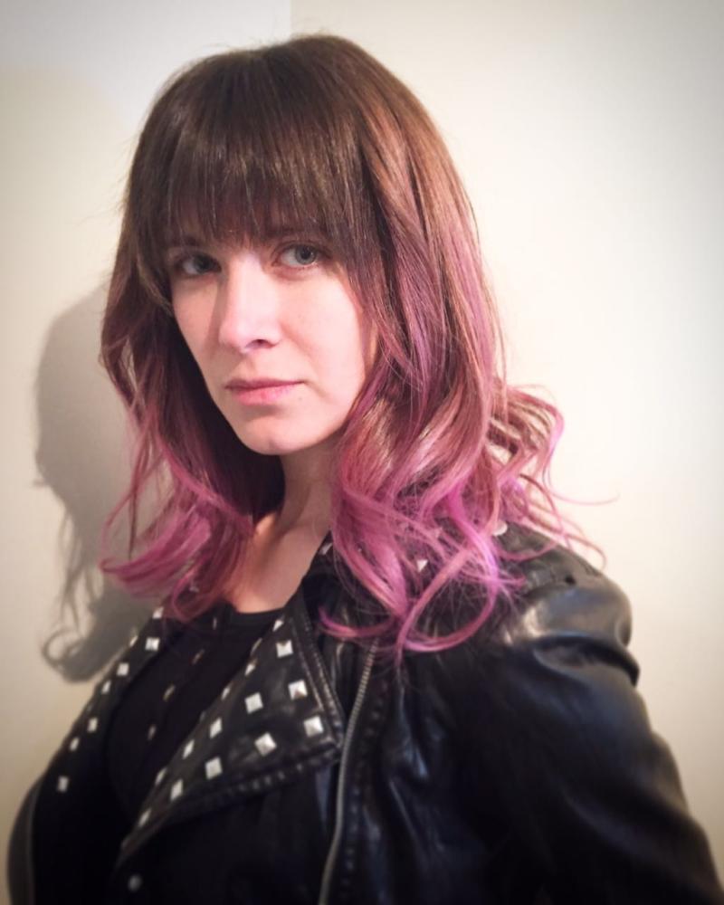 En degradé su cabello transita entre su castaño natural y el tono fantasía.