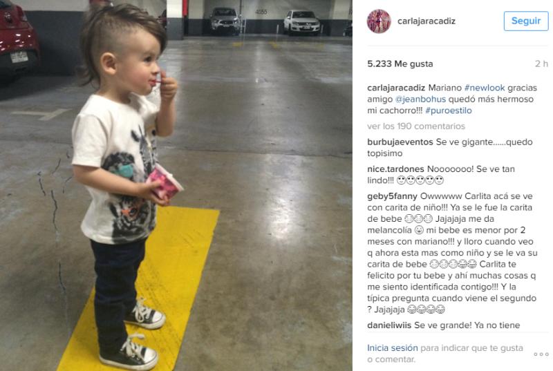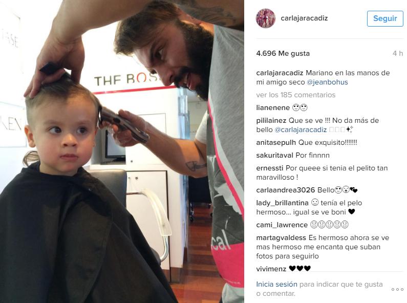 Luego publicó la foto tan esperada, el pequeño con su nuevo look. Se puede ver que tiene rapados ambos costados de la cabeza “Mariano #newlook gracias a migo @jeanbohus quedo más hermoso mi cachorro!!! #puroestilo” escribió Jara.