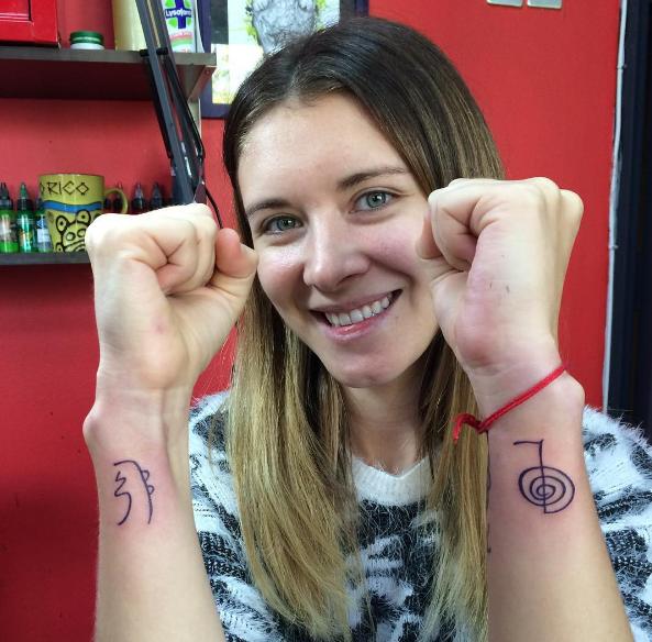 Carla Jara se tatuó dos símbolos de Reiki en los brazos