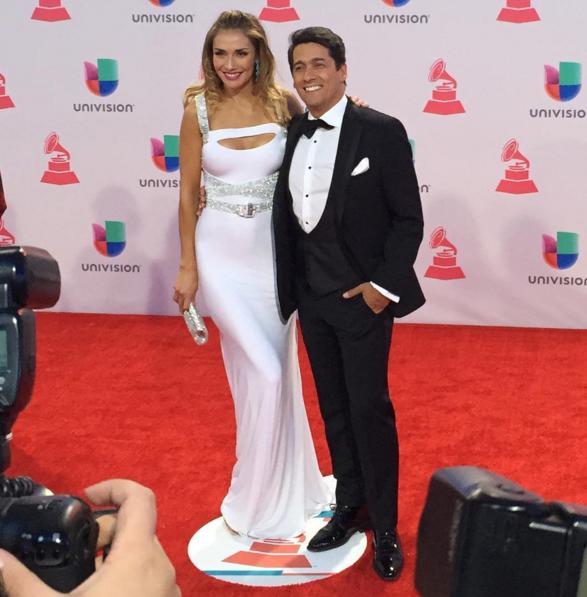 Así, De Moras apareció en la alfombra roja de los Latin Grammy junto a Rafael Araneda. La pareja de conductores promociona en Estados Unidos un nuevo festival de la canción.
