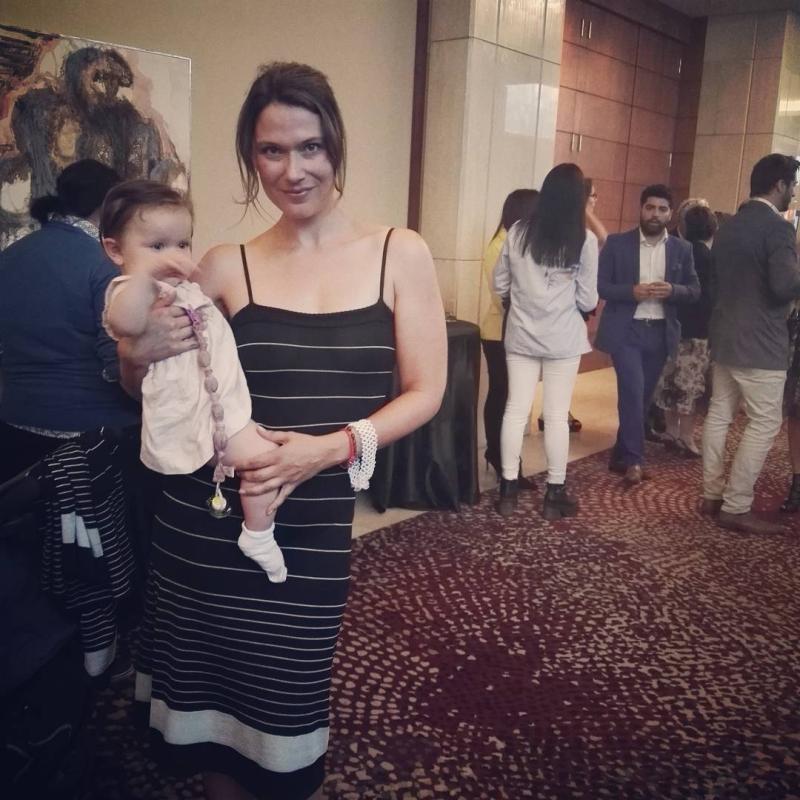 Catherine Mazoyer llegó con guagua en brazo a evento