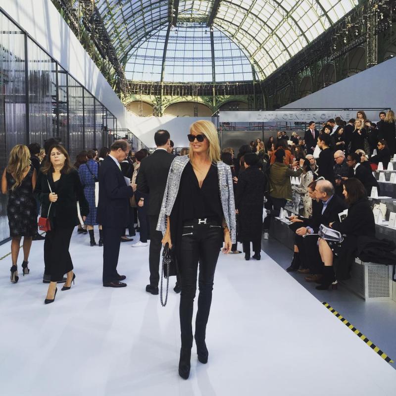 Cecilia Bolocco recibió en el hotel donde hospedaba con su pareja dos invitaciones que hicieron que cambiara sus pasajes. Todo en el marco de la semana de la moda de París. Chanel y Louis Vuitton fueron los desfiles que la querían en primera fila y para la primera firma vistió unos pantalones Yves Saint Laurent, una blusa Gyvenchy y una chaqueta de la marca, tono plateado, muy corte Chanel.