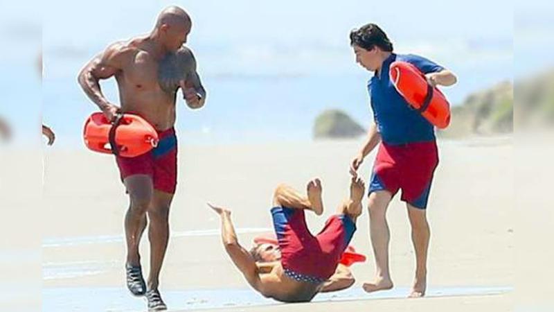 A Zac Efron se le olvidó que el guión del remake de Baywatch no es comedia. El actor de 28 años grababa la típica escena de la serie, cuando los salvavidas corren por la arena, cuando se enredó con la boya de rescate y cayó al suelo.