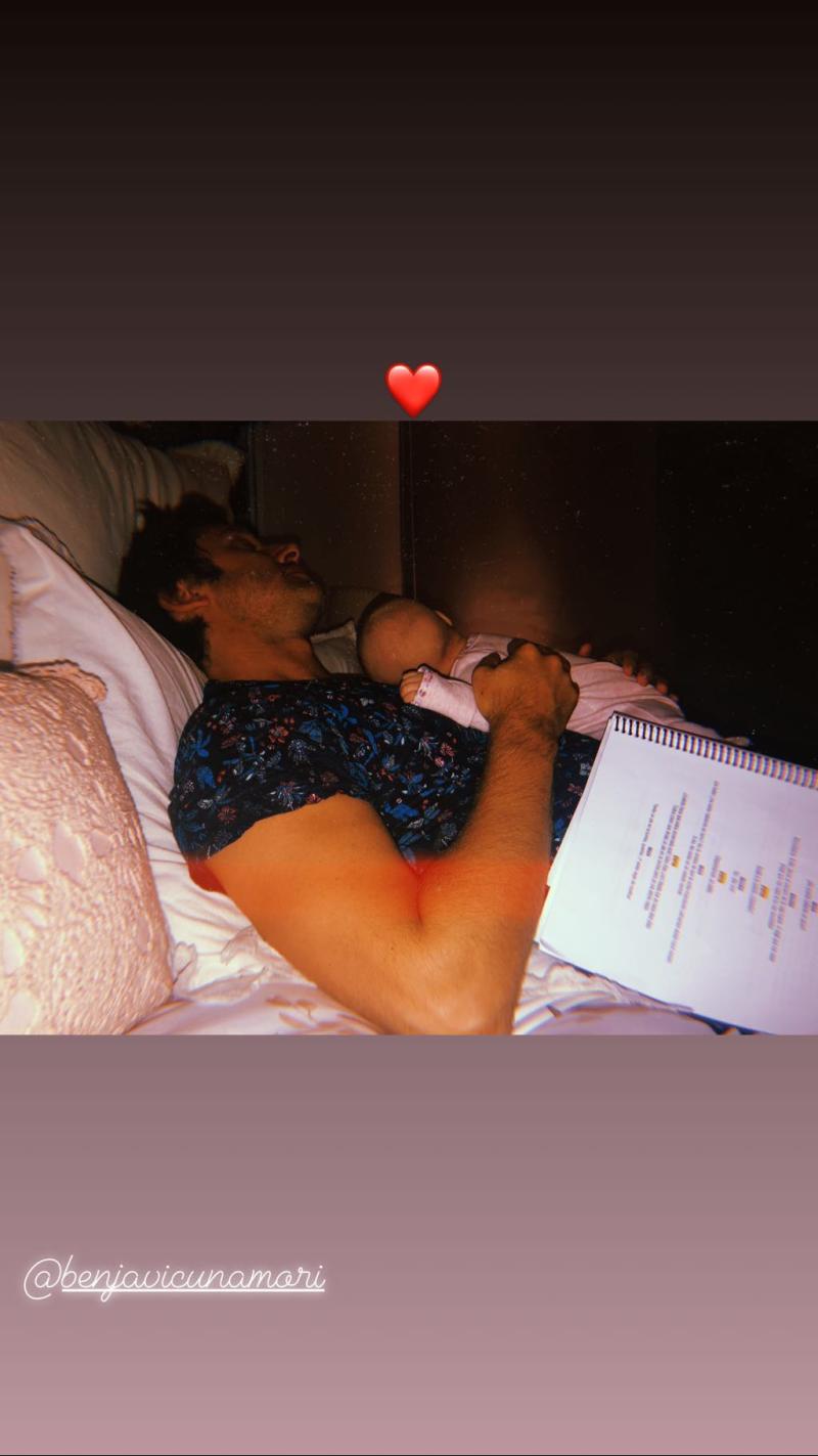 Hace unos días la intérprete de "El Hilo Rojo" usó Instagram Stories para compartir la tierna imagen de Benjamín Vicuña durmiendo con Magnolia sobre su pecho ¡puro amor!