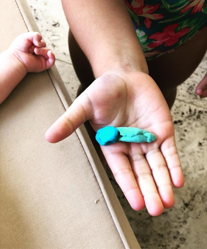 La menor realizó una escultura de la pequeña Magnolia y escogió el celeste para darle la forma, según como ella ve a la guagüita. Y su mamá orgullosa le tomó una foto al tierno momento y lo subió a Instagram. "Mira mamá, la hice a Magnolia", contó la actriz lo que le dijo Rufi a la hora de enseñarle su obra de arte.