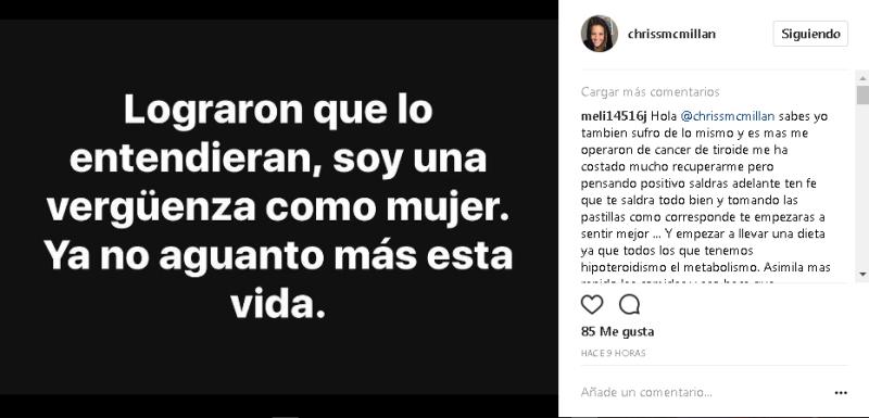 La periodista Chriss Mc Millan generó gran preocupación entre sus seguidores en redes sociales, luego de que en sus cuentas de Instagram y Twitter aparecieran publicados una serie de inquietantes mensajes.