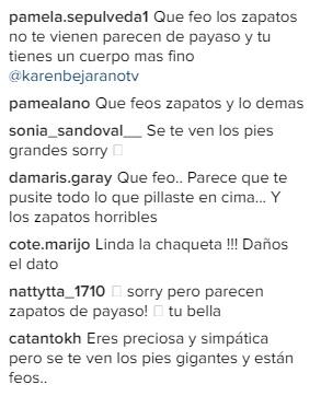 “Parecen zapatos de payaso”, “Se te ven los pies gigantes”, “Esos zapatos ¿Se los pediste a los Tachuela?”, “Parecen de payaso”, “Que grandes tus pies” y “Horribles tus zapatos” fueron algunos de los varios comentarios que recibió la joven por su calzado.
