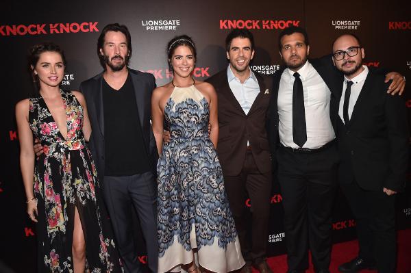 "Knock Knock" cuenta la historia de un padre de familia que recibe a dos chicas en peligro, pero la trama da un vuelco tras darse a conocer las verdaderas intenciones de las jóvenes.
