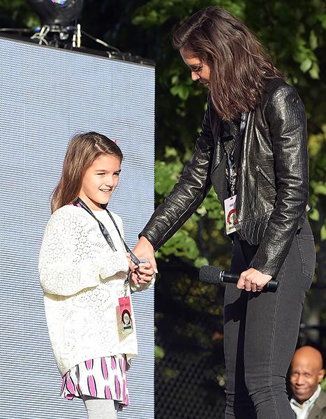 Ya tiene 9 años y además de ser una fashionista, heredó la belleza de su mamá, Katie Holmes. Fue ella quien la subió al escenario en el Global Citizen Festival este fin de semana, del que ella era animadora.