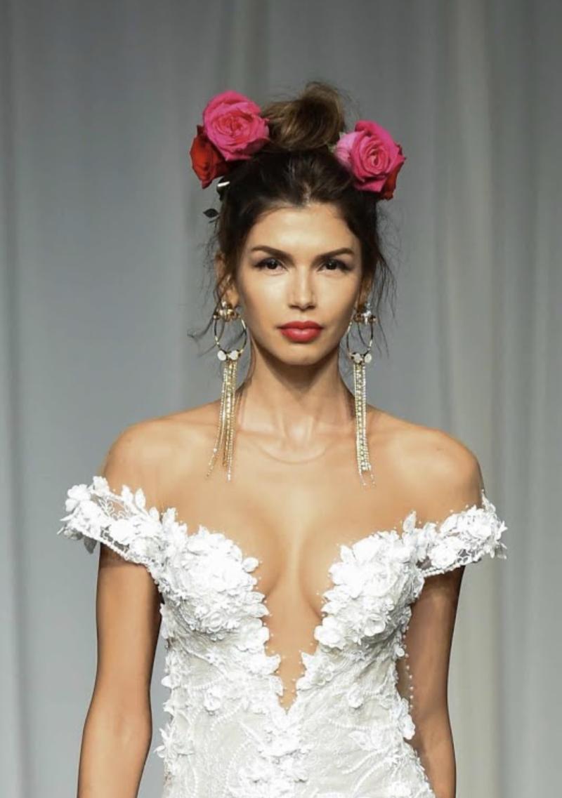 El maquillaje natural y simple sigue siendo tendencia, pero esta vez es acompañado de accesorios grandes, coloridos y notorios. Ya sean aros, tocados con flores, con piedras o collares, los accesorios llamativos marcan tendencia para romper con el look clásico y neutro de un sólo color de las novias.