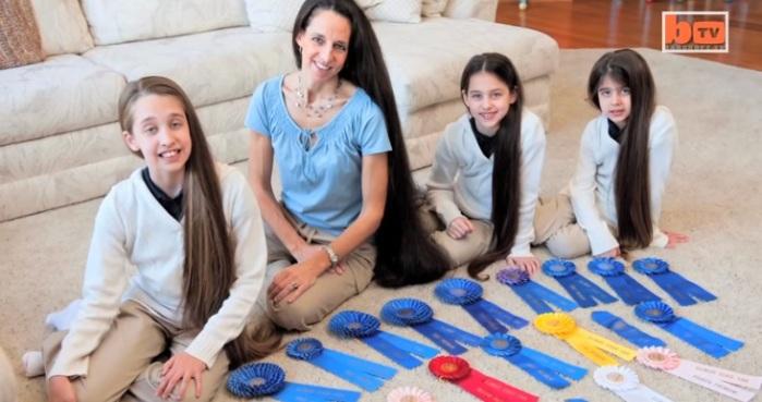 La estadounidense de 43 años, Tere Lynn Svetlecich Russell, jamás ha dejado que una tijera se acerque a su larga cabellera de 1.88 metros. A su haber tiene montón de medallas por su récord y sus tres hijas siguen sus pasos. Callan tiene 93 centímetros, Cendalyn 91 y Chesney 68.