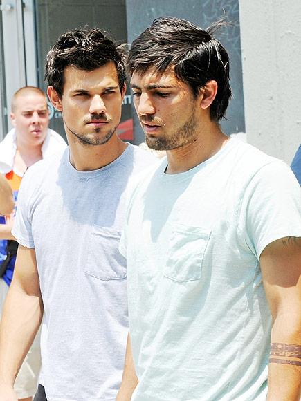 Taylor Lautner y su "gemelo" en el set de "Tracers"