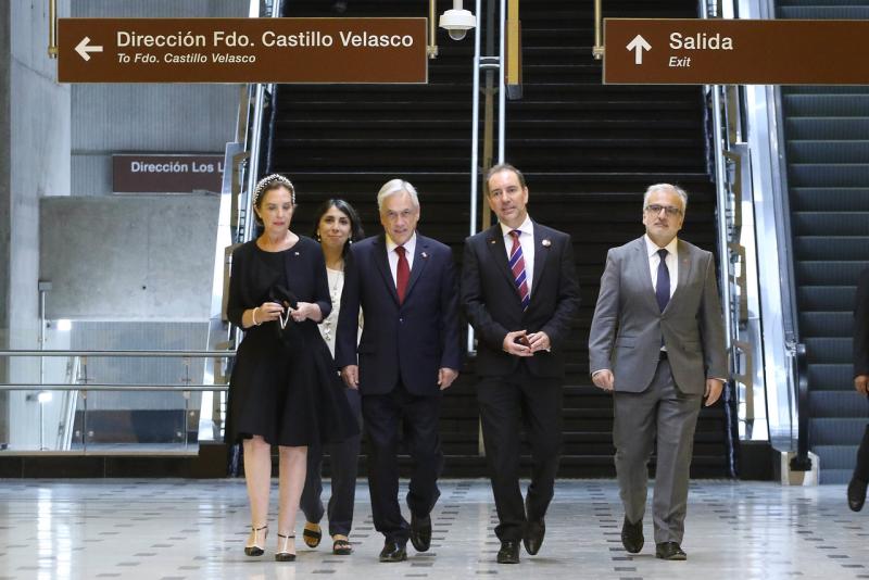 La autoridad inauguró la nueva Línea 3 del Metro de Santiago con un espectacular look.
