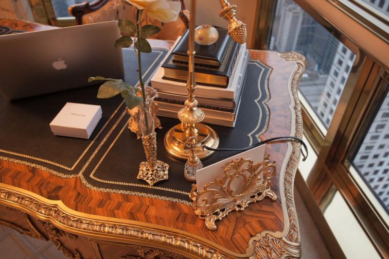 Porque el oro es muy preciado para Trump, que tiene piezas de 24 kilates en todas partes. Platos, bandejas, jarrones, marcos de fotos y de cuadros, e incluso detalles en las paredes están hechos del metal precioso.