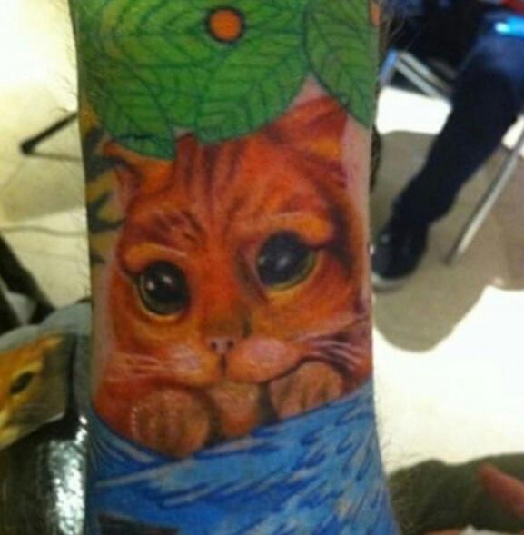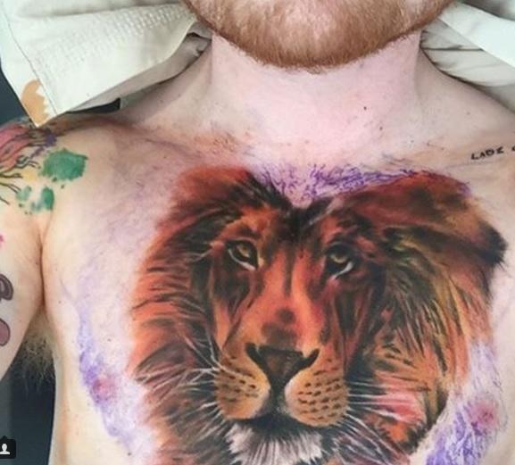 Sólo se había tatuado por completo los brazos, pero ahora agregó uno a su pecho. Estos dibujos son distintos de los que solemos ver, porque son coloridos y por lo general son monos animados o cosas que para el resto de las personas suelen ser muy extraños y sin sentido.