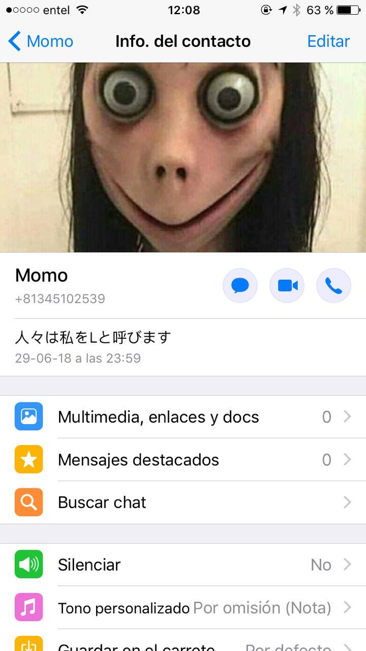 La imagen se viralizó rapidamente, especialmente el desafío que busca que usuarios contacten a Momo a las tres de la mañana través de un número de WhatsApp (+81435102539).