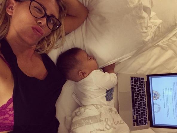 María José graficó el momento con una imagen de ella junto a su bebé, acompañada por un computador.