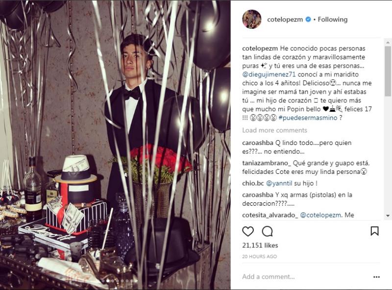 “He conocido pocas personas tan lindas de corazón y maravillosamente puras, y tú eres una de esas personas. Conocí a mi maridito chico a los 4 añitos, delicioso. Nunca me imaginé se mamá tan joven y ahí estabas tú, mi hijo del corazón. Te quiero más que mucho mi popin bello ¡Felices 17!”, escribió en la publicación.