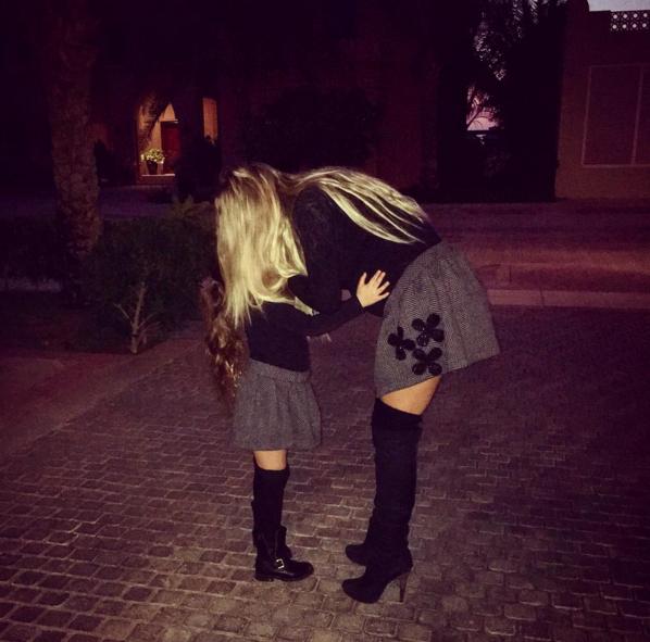 Esta vez lo hizo con una imagen donde abraza a una de sus hijas, y la tapa con el pelo, todo para mostrar sus tenidas “matchy matchy”.
