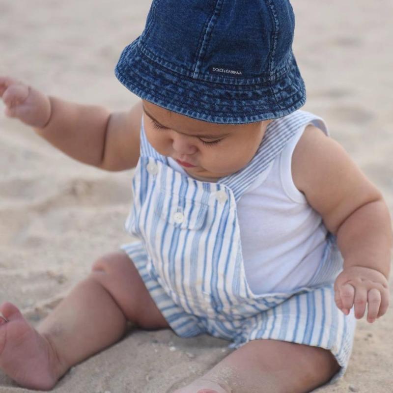 Y aquí Jesús tocando la arena de la playa por primera vez ¡Una ternura!